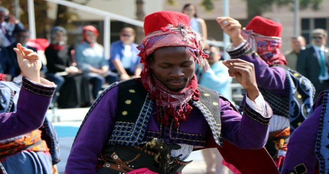 Daha sonra, Gençlik Hizmetleri ve Spor İl Müdürlüğünün halk oyunları ekibi tarafından oyunlar sergilendi. Ekibin içerisinde yer alan Ugandalı Abdulkerim Guenzi de performansı ile vatandaşlardan alkış topladı. Düzenlenen etkinlikler, tören geçişi ile sona erdi.