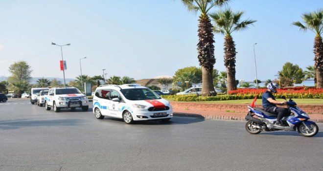 Zabıta ekipleri daha sonra araçlarla şehir içinde konvoy düzenledi.