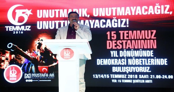 Cumhurbaşkanı Recep Tayyip Erdoğanın çağrısı sonrası meydanlara çıkan milletin o geceki kahramanlığından ötürü gurur duyduklarını ifade eden Başkan Ak, Milletimizin iradesine, seçilmiş hükümete ve Cumhurbaşkanımıza karşı yapılan demokrasimiz için yüz karası bir geceydi. Aynı zamanda milletimiz tıpkı Çanakkale Savaşında olduğu gibi bir kahramanlık destanı yazdı ve milletimizle birlikte zaferle sonuçlanan bir sabaha ulaştık. Vatanı, milleti, dini için tankların, helikopterlerin, bombaların altına kendini atan kahramanlarımız oldu. Keçiörene hiç tank girmedi, bomba düşmedi ve çatışma olmadı, ama buna rağmen en fazla şehit veren ilçe Keçiören oldu. O gece 28 şehit verdik ve 236 gazimiz var. Keçiörenli nerede çatışma ve sıkıntı varsa oraya koştu, 9 ayrı noktada şehit olan vatandaşlarımız var. Bütün şehitlerimize ve gazilerimize minnettarız. O gün evinde oturmayıp sokağa çıkan herkes bizim için kahramandır ifadelerini kullandı.