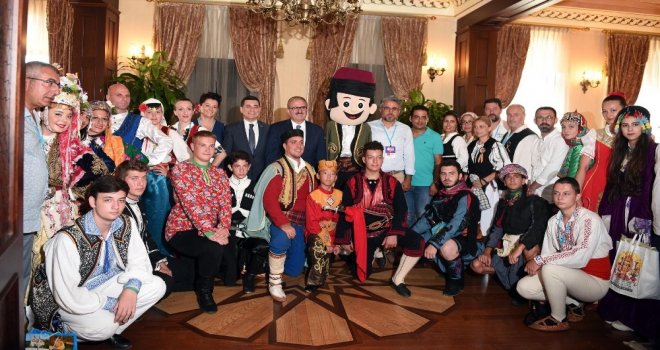 Başkan Hakan Tütüncü, Cumhuriyet Meydanındaki gösteriden önce konuk ekipleri temsilen bir heyet ve festivalin maskotu Efe ile Antalya Valisi Münir Karaloğlunu da ziyaret etti.