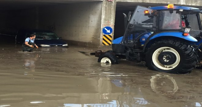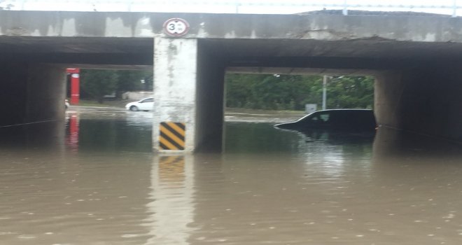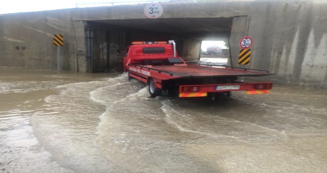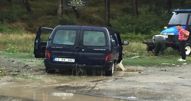 Keşan ilçesinde akşam saatlerinde etkili olan şiddetli yağmurda yollar göle döndü. Yağışın ardından şehrin yüksek kesimlerinden gelen sular, özellikle şehrin en işlek caddelerinden Kurtuluş Caddesinde yağmur suyu kanallarını taşırdı. Cadde üzerinde araçlar zorlukla ilerlerken, Orman Fidanlığı önündeki köprüde toplanan sular taşkına neden oldu. Biriken sulardan geçmek isteyen bir araç ise yarıya kadar suya gömüldü. Aracında mahsur kalan sürücü, Keşan Belediyesi itfaiye ekiplerinden yardım istedi. İtfaiye ekiplerinin çekemediği araç, olay yerine gelen bir traktör yardımıyla mahsur kaldığı köprü altından çıkarıldı. Mahsur kalan aracın çıkarılmasının ardından köprü altı belediye ekiplerince trafiğe kapatıldı. Vatandaşlar, her yağmur sonrası suyla dolan köprü altında Keşan Belediyesinin bir an önce önlem alması gerektiğini söyledi. İlçe merkezinde de yaşanan su birikintileri nedeniyle esnaf zor durumda kaldı.