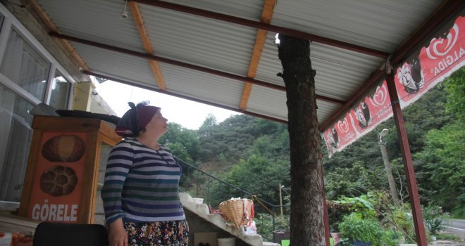 Görele ilçesinin Aydınlar köyünde 2 katlı ev görenlerin dikkatini çekiyor. Evin sundurma çatı olarak kullanılan kısmında armut ağacının gövdesi içeride dalları ise çatının üzerinden uzanıyor. Bu durum ise ilginç bir görüntü oluşturuyor.