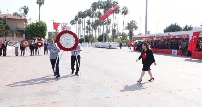 Cumhuriyet Meydanında düzenlenen tören, Kuzey Kıbrıs Türk Cumhuriyeti (KKTC) Mersin Başkonsolosu Ayşen Volkan İnanıroğlunun Atatürk Anıtına çelenk sunmasıyla başladı. Günün anlamına ilişkin konuşan İnanıroğlu, Bundan tam 44 yıl önce Yunan cuntası Kıbrıs Adasını Yunanistana bağlamak ve Enosis hayallerini gerçekleştirmek amacıyla harekete geçmiştir. Türkiye Cumhuriyeti de Yunan darbesi karşısında fiili garantörlük haklarını kullanarak Kıbrıs Barış Harekatını gerçekleştirmiş ve Kıbrıs Türk halkını özgürlüğüne kavuşturmuştur dedi.