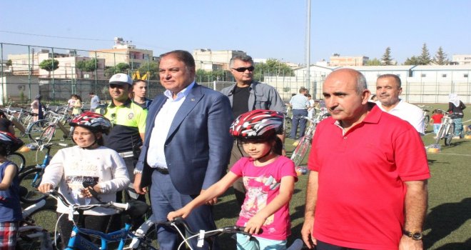 Kilis Valiliği de çocuklara kask hediye ettiği bisiklet dağıtımından sonra Belediye Başkanı Hasan Kara, Vali Mehmet Tekinarslan ve diğer yetkililer çocuklar ile birlikte bisiklet sürdü.