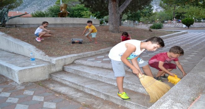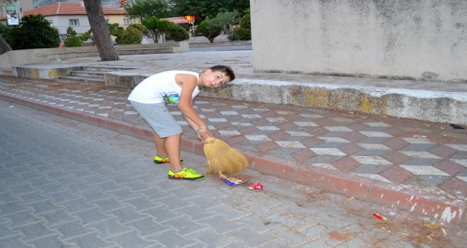 Temizlik yapan çocuklar İskender Tunahan Demir, Emirhan Taşdöşemeci, Zeynep Beren Çalışkan, Semanur Taşdöşemeci ve Kaan Kalpaklıoğlu, temizlik sonrası dondurma yiyerek keyif yaptı ve yorgunluklarını attı.