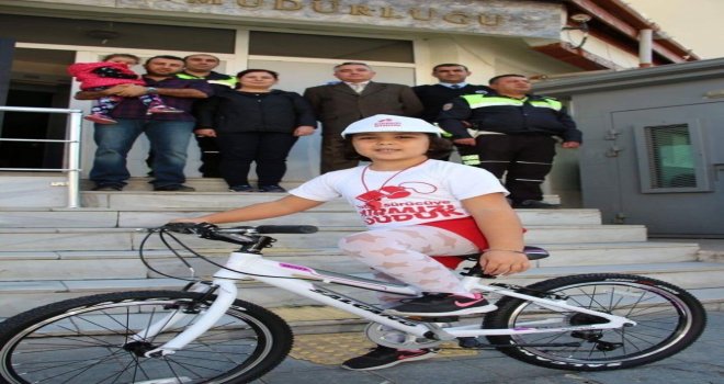 6 yaşındaki Beril Aslan, Kurban Bayramında trafik kazalarının önlenmesi amacıyla başlatılan “Kırmızı Düdük” projesi kapsamında bisiklet kazanan 100 çocuktan birisi oldu.