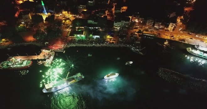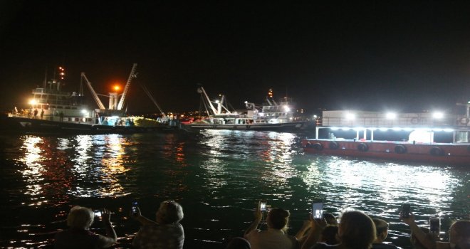 Balıkçılar daha sonra havai, meşale fişek gösterileri ve gemi sirenleri eşliğinde limandan denize açıldılar. Teknelerin açılması sırasında ise aileler yakınlarını el sallayarak uğurladılar. Balıkçıların ‘Vira Bismillah diyerek denize açıldığı o anlar havadan görüntülendi.