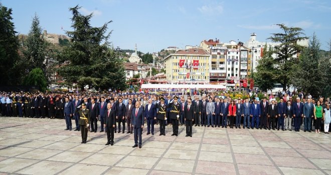 Vali Yaşar Karadeniz, Garnizon Komutanı Personel Albay Gamze Aydoğdu ve Belediye Başkanı Tahsin Babaş, törene katılan ve halkın bayramını kutladı. Saygı duruşunda bulunulması ve İstiklal Marşının okunmasının ardından bayramın anlam ve önemini belirten konuşmayı Garnizon Komutanı Personel Albay Gamze Aydoğdu yaptı.