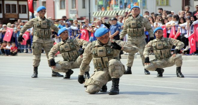 Kastamonuda İl Jandarma Komutanlığı bünyesinde bulunan Komando Bölüğünde eğitim alan askerler, 30 Ağustos Zafer Bayramı kutlamalarında Ege yöresine ait halk oyunları gösterisi sundu. Komandoların oyunu, izleyenlerden büyük alkış topladı.