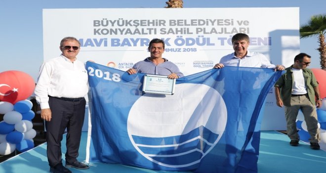 Antalya Büyükşehir Belediyesinin plajlarında Mavi Bayrak gururu yaşandı. Büyükşehir Belediyesinin dünya çapındaki projesiyle bambaşka bir görünüme kavuşan dünyaca ünlü Konyaaltı Sahilindeki 10 plajı ile Lara EKDAĞ Plajı, Sarısu Plajı, Sarısu Kadınlar Plajı ve Beldibi 1 Atatürk Plajına törenle Mavi Bayrak çekildi. Konyaaltı Sahili 26 Numaralı plajda gerçekleştirilen törene Antalya Valisi Münir Karaloğlu, Antalya Büyükşehir Belediye Başkanı Menderes Türel, AK Parti Antalya Milletvekili Mustafa Köse, TURÇEV Başkanı Rıza Tevfik Epikmen ile çok sayıda vatandaş katıldı.