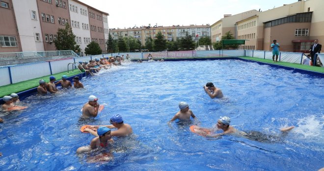 Konya Büyükşehir Belediyesi tarafından “Konyada Yüzmeyen Çocuk Kalmasın” projesi kapsamında şehir merkezindeki ve ilçelerdeki okullara kurulan 45 portatif havuz ve 10 aquaparkta on binlerce çocuk yüzme öğrenmenin keyfini yaşıyor.