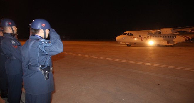 Diğer taraftan askeri aracın devrilmesi sonucu şehit olan askerlerden evli ve 3 çocuk babası piyade er İsa Erçetinin naaşı aynı uçakla memleketi İstanbula uğurlandı.