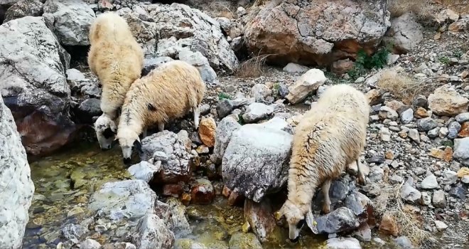 Tuzlarını yiyen koyun sürüleri daha sonra ise su kaynaklarına akın ediyor. Tuzun etkisiyle susayan koyunlar, doğal kaynaklardan su ihtiyaçlarını gideriyor ve iştahla otlamaya başlıyor.