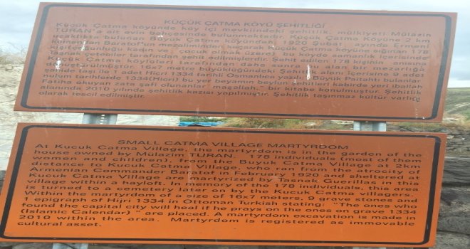 Arpaçaya bağlı Küçük Çatma köyünde bulunan Ermeni Taşnak çetecileri tarafından katledilen 178 kişinin bulunduğu alan bakımsızlıktan dolayı içler acısı durumda.