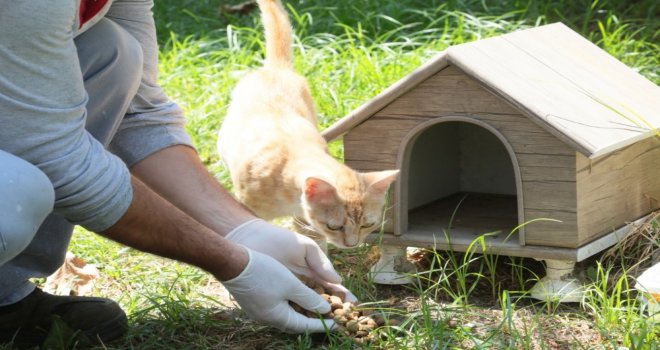 Küçükçekmecede kedilerin ve köpekler için muhtelif parklara ve sitelere kedi ve köpek evi kurularak, yem ve su istasyonlarına düzenli takviye yapılıyor.