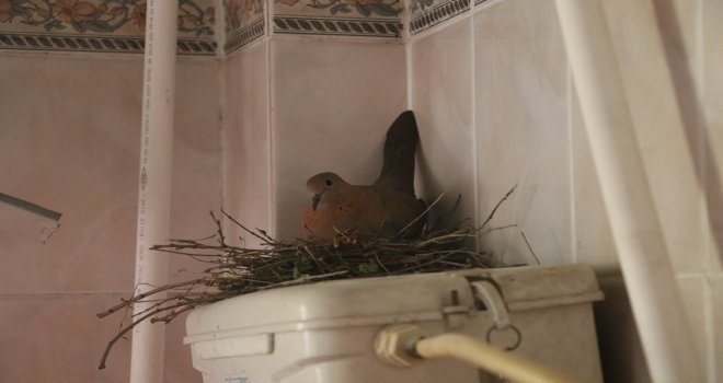 Uludağda bir kumru yavrularını tuvalette dünyaya getirdi.