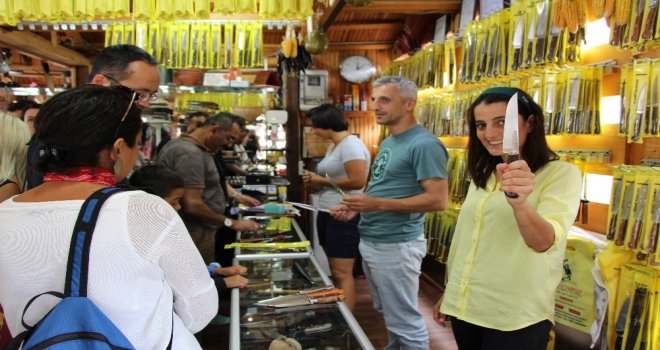 Öte yandan Sürmene bıcağına bölgeye gelen turistlerde yoğun ilgi gösteriyor. Özellikle yerli turistler yaklaşan Kurban Bayramı dolaysıyla hediye olarak aldıkları bıçakların yanına kurbanlık bıçakları da ekliyorlar.