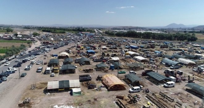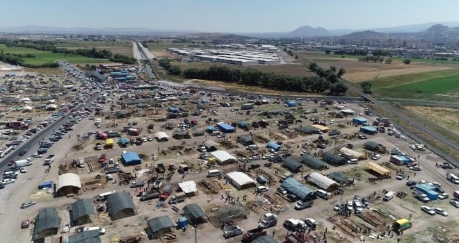 Kayseride bayramın 1inci gününde kurban pazarlarında yaşanan hareketlilik havadan görüntülendi.