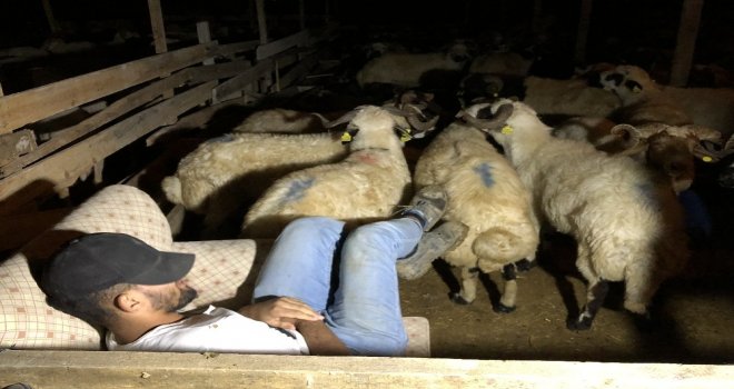 Bursada hayvanları çalınmasın diye nöbet tutan celepler, kurbanlıklarla koyun koyuna yatıyor.