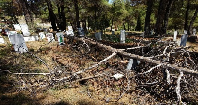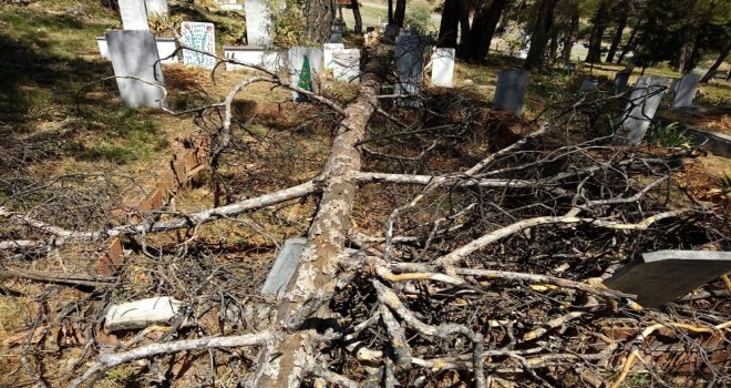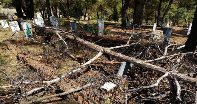 Kuruyan Ağaçlar Mezarların Üzerine Yıkıldı