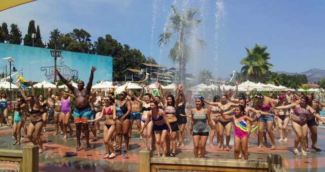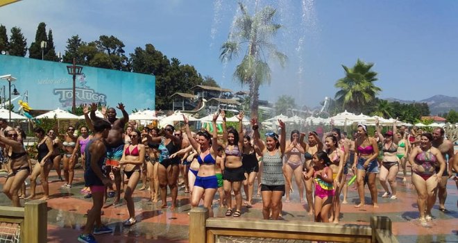 Kuşadasında hafta sonu yoğunluğu yaşanıyor. Otellerin havuzları ile plajlar doldu, Dilek Yarımadası Milli parkı yoğunluk nedeniyle araç girişine kapatıldı.