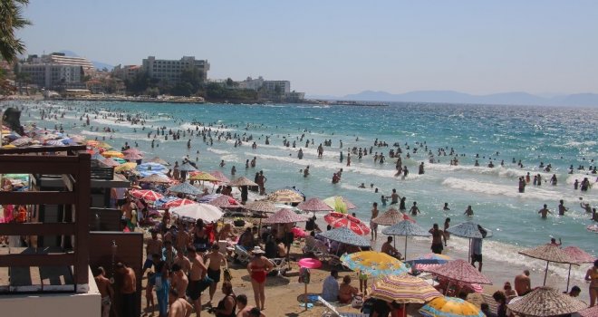 Kuşadasında 37 dereceyi bulan hava sıcaklığında deniz suyu sıcaklığının da 26 derece olmasıyla yerli ve yabancı turistler ile günübirlik tatilciler sahillere ve su parklarına akın etti. Dünyaca ünlü Kadınlar Denizi Plajı bu yıl ilk defa bu kalabalığı görürken, iğne atsan yere düşmez görüntüler oluştu. Pygale, şehir merkezi plajları, Sahil Siteleri, Davutlar Sevgi Plajı ile Güzelçamlı sahilleri de tatilcilerle doldu. Ayrıca, Dilek Yarımadası Milli Parkı da tatilcilerin akınına uğrayan yerlerin başında yer aldı. Milli Parktaki koylar ve plajlar sezonun en kalabalık günlerini yaşamaya başladı.