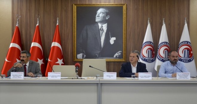 Saygı Duruşu ve İstiklal Marşının okunmasının ardından toplantı açılış konuşmasını Rektör Yardımcısı Prof. Dr. Ahmet Erdem yaptı. Prof. Dr. Erdem, son günlerde yaşanan olayların, kamu üniversite ve sanayi işbirliğinin daha güçlü olması ve daha başarılı çalışmalar yapması gerekliliğini ortaya koyduğunu belirterek, “Bu ekonomik savaşta üniversite olarak başta Cumhurbaşkanımızın, hükümetimizin ve devletimizin yanında yer aldığımızı vurgulamak istiyorum. Temennimiz hep birlikte daha güçlü bir Türkiye olmaktır. Bu bağlamda bu toplantının hayırlara vesile olmasını dilerim” dedi.