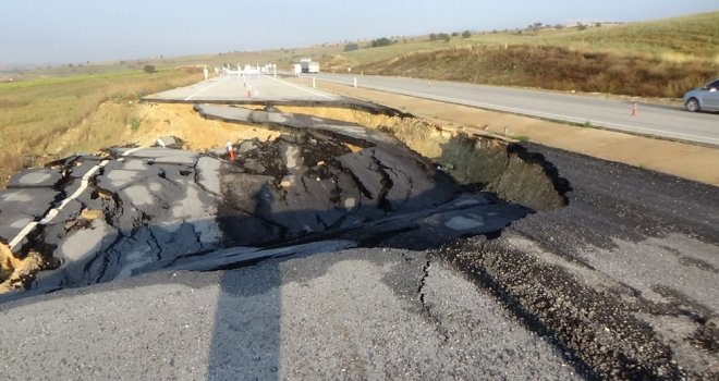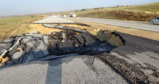 Kütahya-Uşak Karayolu Dumlupınar ilçesi yakınlarında meydana gelen yol çökmesinin ardından, yolun 2 kilometrelik bölümünün tek şeridi, trafiğe kapatıldı.