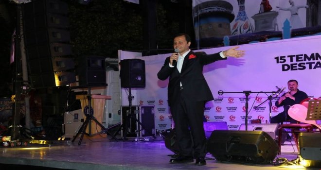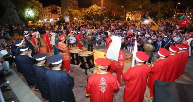 15 Temmuz şehitleri için okutulan hatimlerin duasının da yapıldığı anma gecesinde Evliya Çelebi Mehteran Takımı gösterisini sundu, Esat Kabaklı ile Orhan Hakalmaz konser verdi. (EFE)