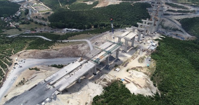 İki kıtayı birbirine bağlayacak ve ulaşımda büyük bir rahatlamayı sağlayacak olan Kuzey Marmara Otoyolu, dünyada eşi görülmeyen yapıları ile adından söz ettirecek. Kocaeli Büyükşehir Belediye Başkanı İbrahim Karaosmanoğlu ve beraberindekilerin hakkında bilgi aldığı projenin Dilovası Liman Kavşaığı-İzmit kısmında inşa edilen 4 şeritli tüneller, dünyanın en geniş tünelleri olma özelliğini taşıyor. 52 kilometre uzunluğuna sahip olacak olan Kuzey Marmara Otoyolunun Liman Bağlantı Yolu-İzmit arasında yer alan projenin 5. kısmında 5 adet tünel, 6 viyadük, 2 köprü yer alacak. Liman Bağlantı Yolundan başlayan yol Körfez ilçesinin Sevindikli Mahallesinden geçerek, İzmit Doğu Kavşağı mevkiinde TEM otoyoluna bağlanacak. Yaklaşık 135 metre yüksekliğindeki viyadüklere sahip olan Kuzey Marmara Otoyolundaki çalışmalar havadan görüntülendi.