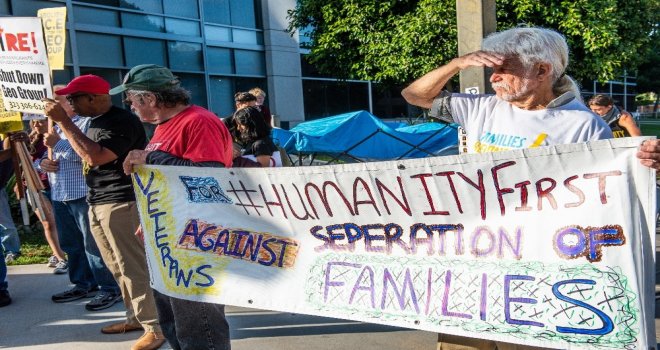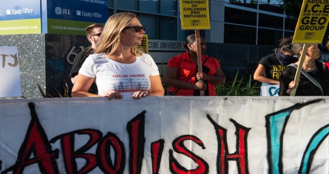 Obama döneminde hazırlanan ve birçok göçmen ailenin yararlandığı DACA programından faydalanan Undocumedia kurucusu aktivist Justino Mora ise, “Burada gazilerle birlikte gazilerin sınır dışı edilmesini protesto etmek için bulunuyorum. GEO Grupa bunlar için para verilmesi durmalı, ailelerin parçalanması bitmeli. GEO Grup direkt olarak göçmenlerin gözaltına alınmasından para kazanan bir firma, çocukların kafeslere kapatılmasından para kazanan bir firma” diye konuştu.