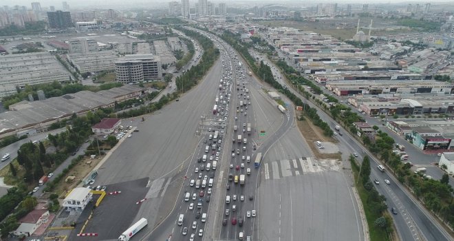 Kurban Bayramını şehir dışında geçirmek isteyen vatandaşların Mahmutbey gişelerinde oluşturduğu trafik yoğunluğu havadan görüntülendi.