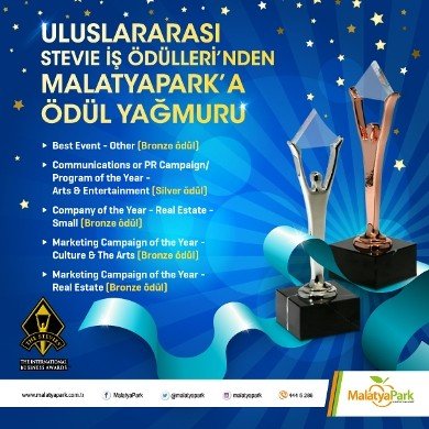 Malatya Park, dünyanın en prestijli ödüllerini veren Stevie Awardsdan birçok dalda ödülün sahibi oldu.