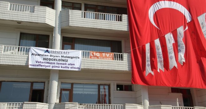 Malazgirt Zaferinin 947nci yıldönümü etkinlikleri ve Cumhurbaşkanı Recep Tayyip Erdoğanın gelişi nedeniyle ilçedeki otellerde ve pansiyonlarda doluluk oranı da yüzde 100e ulaştı.