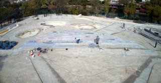 Manavgat Belediyesi Kent Meydanına mozaik taşlarla Manavgat haritası işliyor.