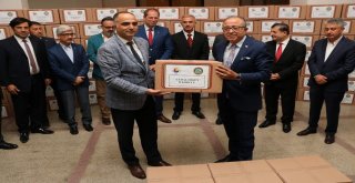 Konuşmaların ardından protokol üyeleri tarafından öğrencilere dağıtılacak botlar okul müdürlerine teslim edildi.