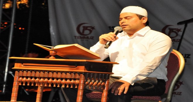 “Efendileri hüsrana uğradılar. Kahroldular. Perişan oldular. Biz bedeller ödedik. Biz şehitler verdik. Biz gaziler verdik. Ardından da bir ay boyunca Anadolunun tüm meydanlarında sabahlara kadar irademize, demokrasimize, bayrağımıza, geleceğimize sahip çıktık. Uykusuz kaldık. Biliyorduk ki çocuksuz, ailesiz, uykusuz, işsiz, aşsız, yaşanılabilir. Ancak ve ancak bayraksız, vatansız ve ezansız yaşanılamaz. Onun için ne gerekiyorsa yaptık. Hamdolsun korkmadık. Ya bu darbe başarıya ulaşırsa, bugün karşı sesimizi çıkarırsak, karşı duruş sergilersek bizi asarlar mı? Bizi içeriye atarlar mı demedik. Tavuk gibi yaşamaktansa, horoz gibi ölelim. Şehit gibi ölelim dedik”