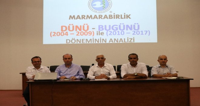 Marmarabirlik Yönetim Kurulu Başkanı Hidamet Asanın konuşmasının ardından Genel Müdür Yardımcıları Mehmet Ertaş, Onur Cengiz, Muhasebe ve Finans Müdürü İlhan Bayram ve Satın Alma MüdürüEmrah Aksarı, Marmarabirlikin dünü, bugünü, satış miktarları, ihracat rakamları, sektörün nereye doğru gittiği, değişen tüketici alışkanlıkları, yapılan ve planlanan yatırımlar ile gelinen süreç hakkında bilgilendirme yaptı.