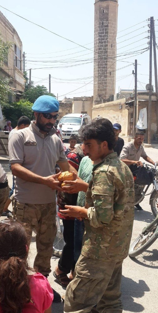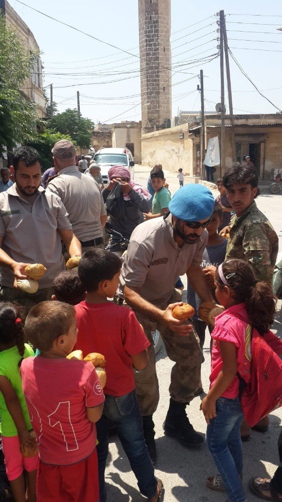 Türk Silahlı Kuvvetleri (TSK) Zeytindalı Harekatı kapsamında girdiği Suriyenin Afrin şehrinde çalışmalara devam ediyor. Operasyondan sonra da Afrinde nöbet tutmaya, halkın can ve mal güvenliğini korumaya devam eden Mehmetçik yaraları sarmayı da ihmal etmiyor. Uzun yıllar PKK, YPG ve DAEŞ gibi terör örgütlerinin gölgesinde altında yaşamak zorunda kalan Afrinlileri normal hayata alıştırmak için canla başla mücadele eden Mehmetçik, çocukların eğitim hayatlarının aksamaması için kolları sıvadı. Yaptıkları kampanyalarla öğrenciler için kırtasiye malzemesi alan Mehmetçikler, çocuklara oyuncak ve halka ise ekmek dağıttı.