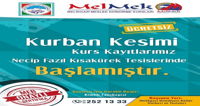Melikgazi Belediye Başkanı Memduh Büyükkılıç, Melikgazi Belediyesi Meslek Edindirme Kurslarında, küçük ve büyükbaş hayvan (kurban) kesimi kursu açtıklarını söyledi.