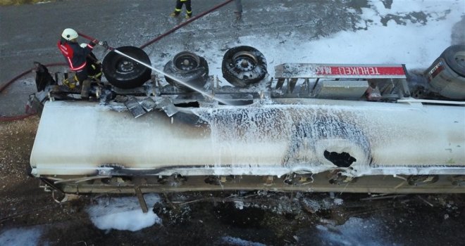 Metanol Yüklü Tanker Devrilip Alev Aldı