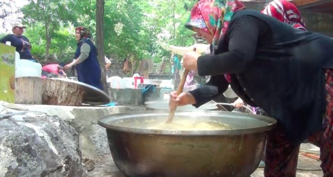 Bir yemekte 15 keçi kesildiğini kaydeden aşçı Nail Özen, keçileri bir gün öncesinden etin dinlenmesi için kestiklerini ifade etti. Özen, Daha sonra komşularımıza ilan ederiz. Komşularımız bu etleri kıyar. 4 büyük kazan et, 2 büyük kazan 70 kilogram bulgur pilavı yapılmıştır. Ayrıca köyün meşhur olan undan ve şekerden yapılan palize tatlısı yapıyoruz. Köyümüzde kadın erkek herkes yardımcı oluyor ifadelerini kullandı.