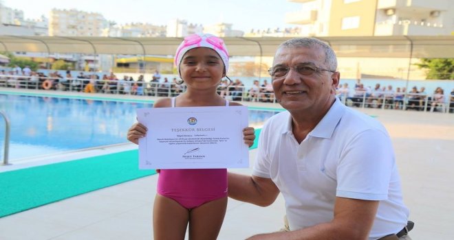 Mezitli Belediyesinin eğitim kurumu olan Bircan Tüfekçioğlu Çocuk Gündüz Bakımevinin miniklerinin yanı sıra ileri yaştaki kursiyerlerin birlikte sertifika alması ilginç görüntüler oluşturdu. Aralarında Mezitli Belediyesi Meclis üyesi Şenol Çavuşun da yer aldığı yeni yüzücülerin sertifika törenine aileler yoğun ilgi gösterdi.