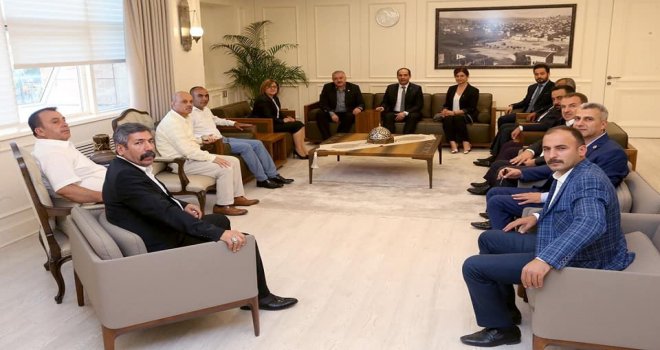 Mhp Gaziantep İl Başkanı Muzaffer Çelik, MHP Gaziantep Milletvekili Sermet Atay ile parti yöneticileri Gaziantep Valisi Ali Yerlikaya ve Büyükşehir belediye başkanı Fatma Şahini makamında ziyaret ettiler.