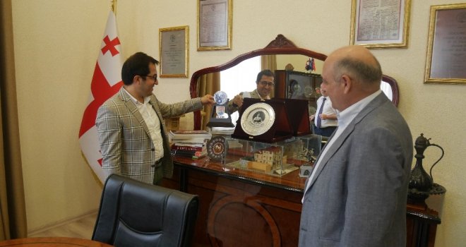 Konuşmaların ardından Gürcistan Cumhuriyetinin Trabzon Başkonsolosu Avtandil Mikatsadze, Trabzon Büyükşehir Belediyesi Genel Sekreter Yardımcısı Mustafa Akkayaya Gürcistan Konsolosluğunu gezdirerek binayı tanıttı.