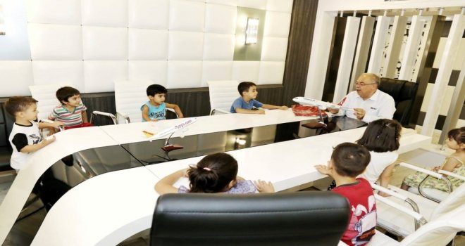 Adıyamanda kreş öğrencileri, Belediye Başkanı Hüsrev Kutluyu makamında ziyaret etti.