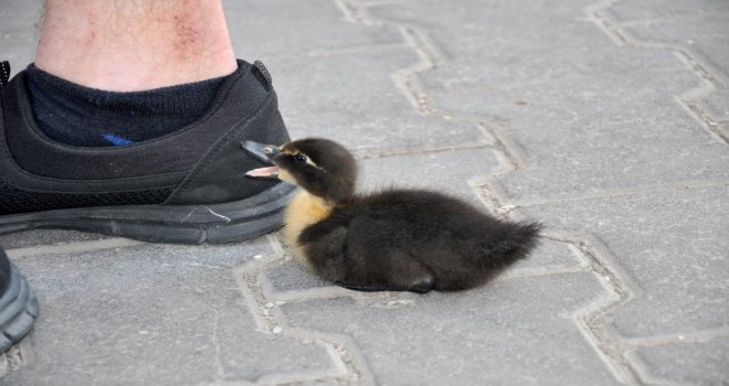 Minik Ördek Sahibiyle Caddelerde Gezip Kahveye Gidiyor