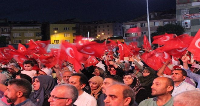 Sahneye çıkan 15 Temmuz gazileri o gece yaşadıklarını, o anki hislerini anlattı. Gazilerden biri gözleri dolarak vatandaşlara, Siz vardınız, biz de varolduk. Allah razı olsun” dedi.
