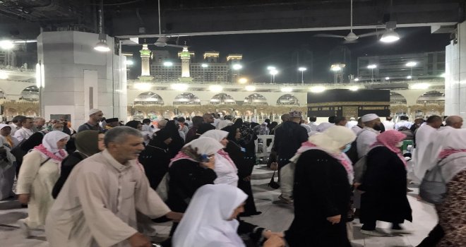 Suriyeli bir baba ve kızları da kutsal toprakları ilk kez görmenin sevincini yaşarken, dünyanın dört bir tarafından gelen Müslümanlar Hacer-ül Esved taşı ve Kabe-i Muazzamanın kapısına dokunmak için büyük bir mücadele verdi. Hem Türkiyeden hem de dünyanın çeşitli ülkelerinden hacı adaylarının yüzde 80i Mekkeye varmanın sevincini yaşıyor.