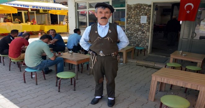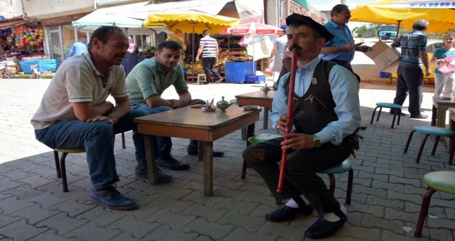 Müşterilerini Kaval Çalarak Karşılıyor, Yöresel Kıyafetiyle Çay Servisi Yapıyor